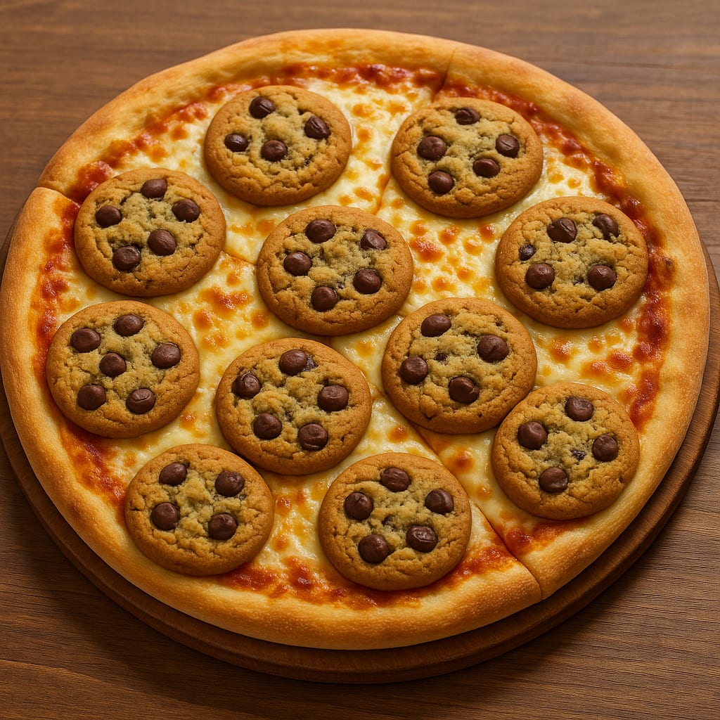 /showme pizza with chocolate chip cookies instead of pepperonis.