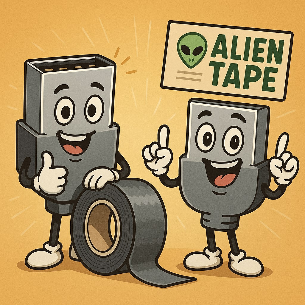 /showme anthropomorphized usb ports trying to sell me alien tape.
