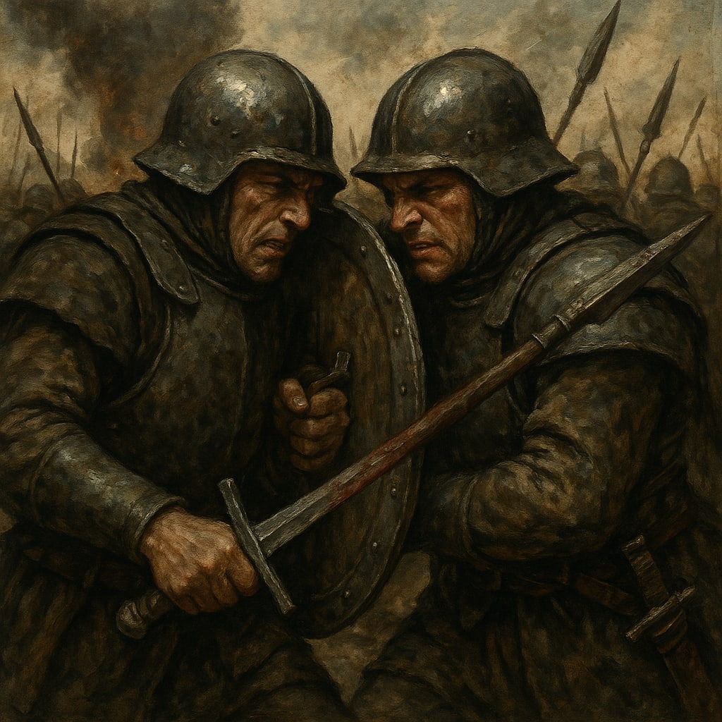 @mediocrebot You know the kingdom has no money when the fighters have to share a shield. The kingdom must have spent it all on inventing the sword pike.