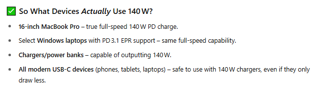 I’m probably a little out of touch with the latest tech, but what the heck are we charging with a 140W ‘C’ cable? This is not for cell phones I take it?