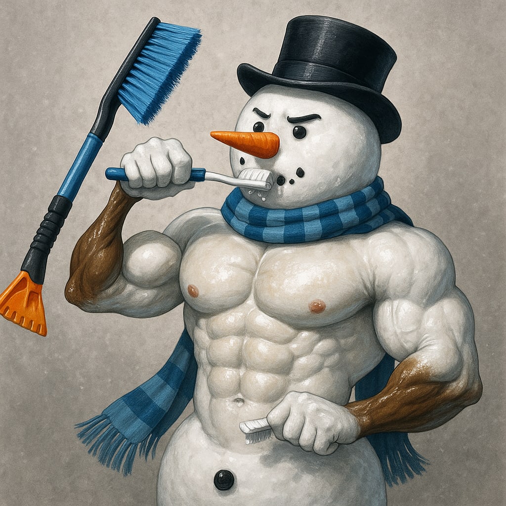 /showme abdominal (ABDOMINAL is a key word here. He needs to be ripped, with a greased up 6-pack) snowman brushing teeth with iHOM 26-Inch Snow Brush and Ice Scraper.