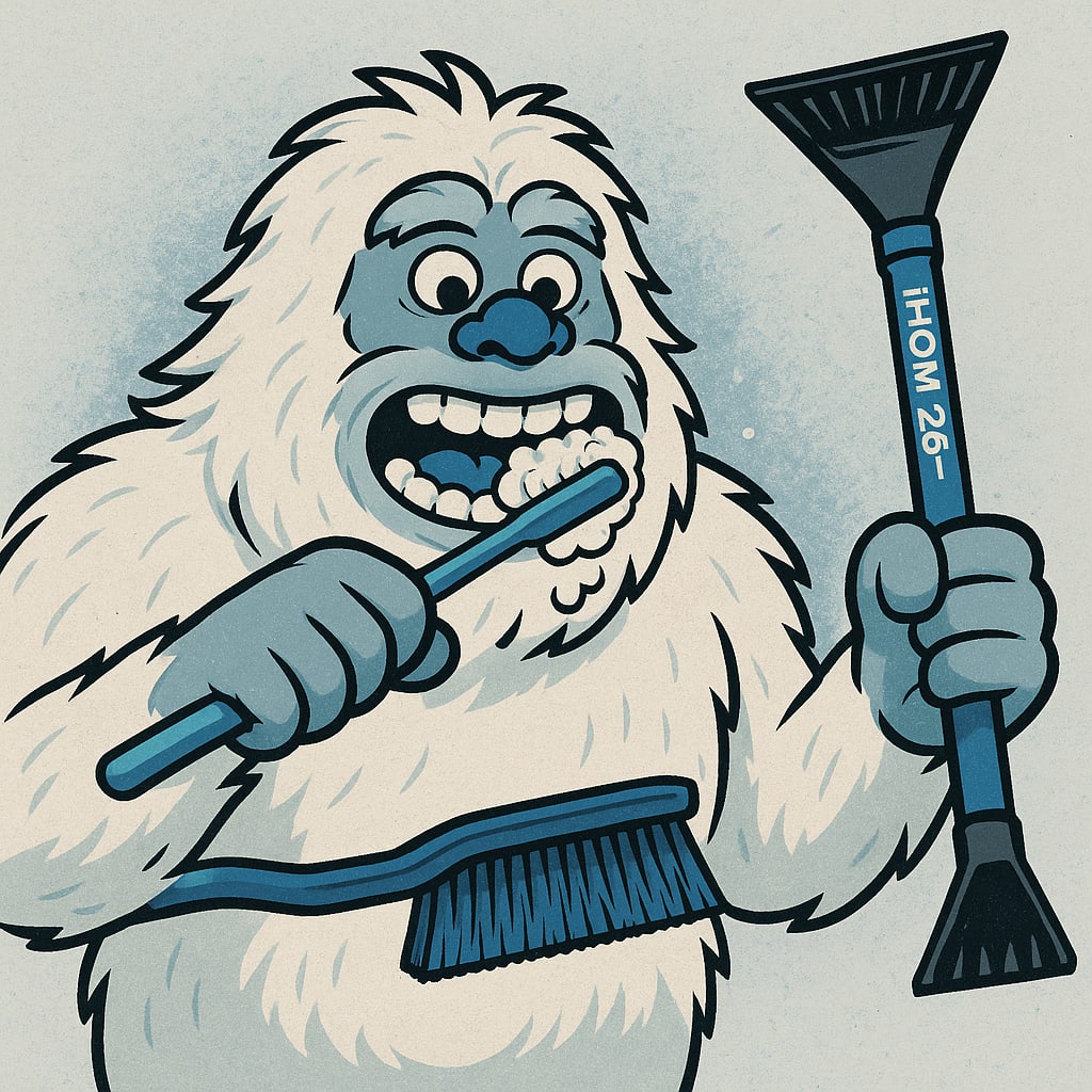 /showme abdominal snowman brushing teeth with iHOM 26-Inch Snow Brush and Ice Scraper.