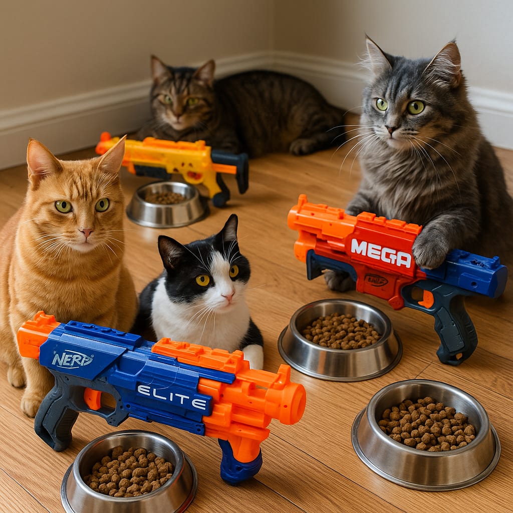 /showme A cat with a Nerf gun sitting inside Pandora’s box.