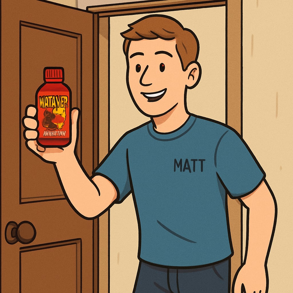 /showme a guy named Matt opening a door to get a Matador energy shot.