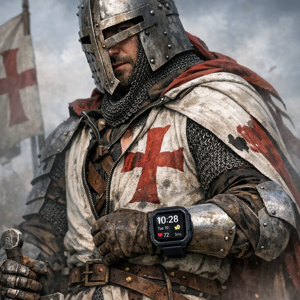 @cfg83 Here’s the image you requested for “unzipped ajar crusader wearing Aukey SmartWatch 2 Ultra”