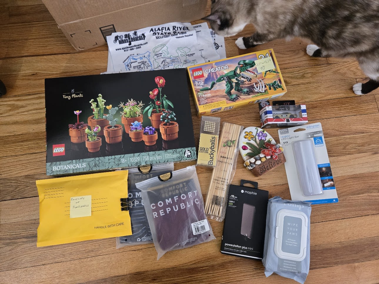 I realize I had set aside my goofy/goody items and didn’t put them in the box, so someone might be getting a supplemental package in a few days.