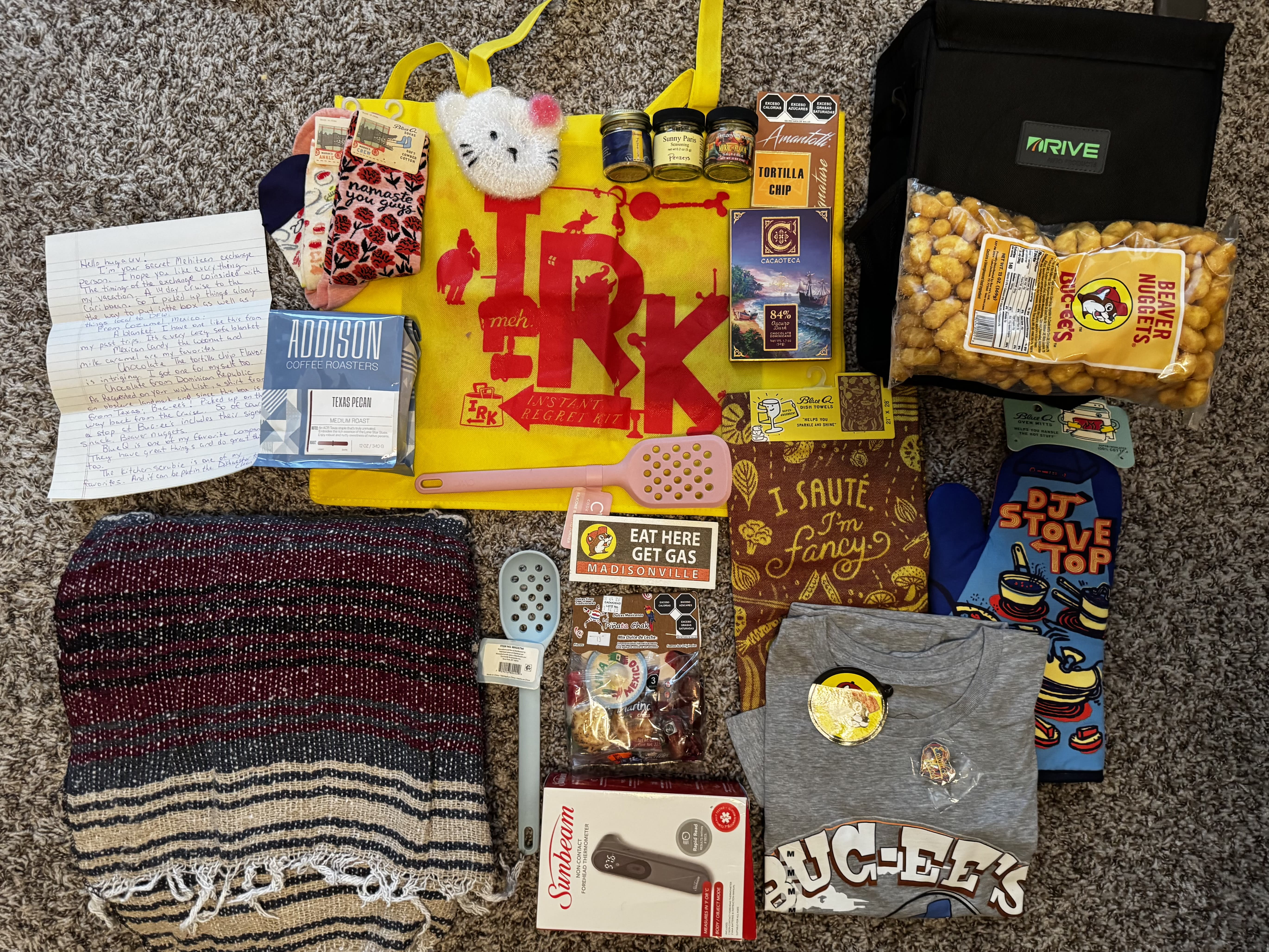 . I guess draw restrictions don’t forbid the giftee from becoming the GIFTER. So here we come full circle. My only regret as a gifter to @kykazaa as giftee last year, was not including something from Buc-ee’s.