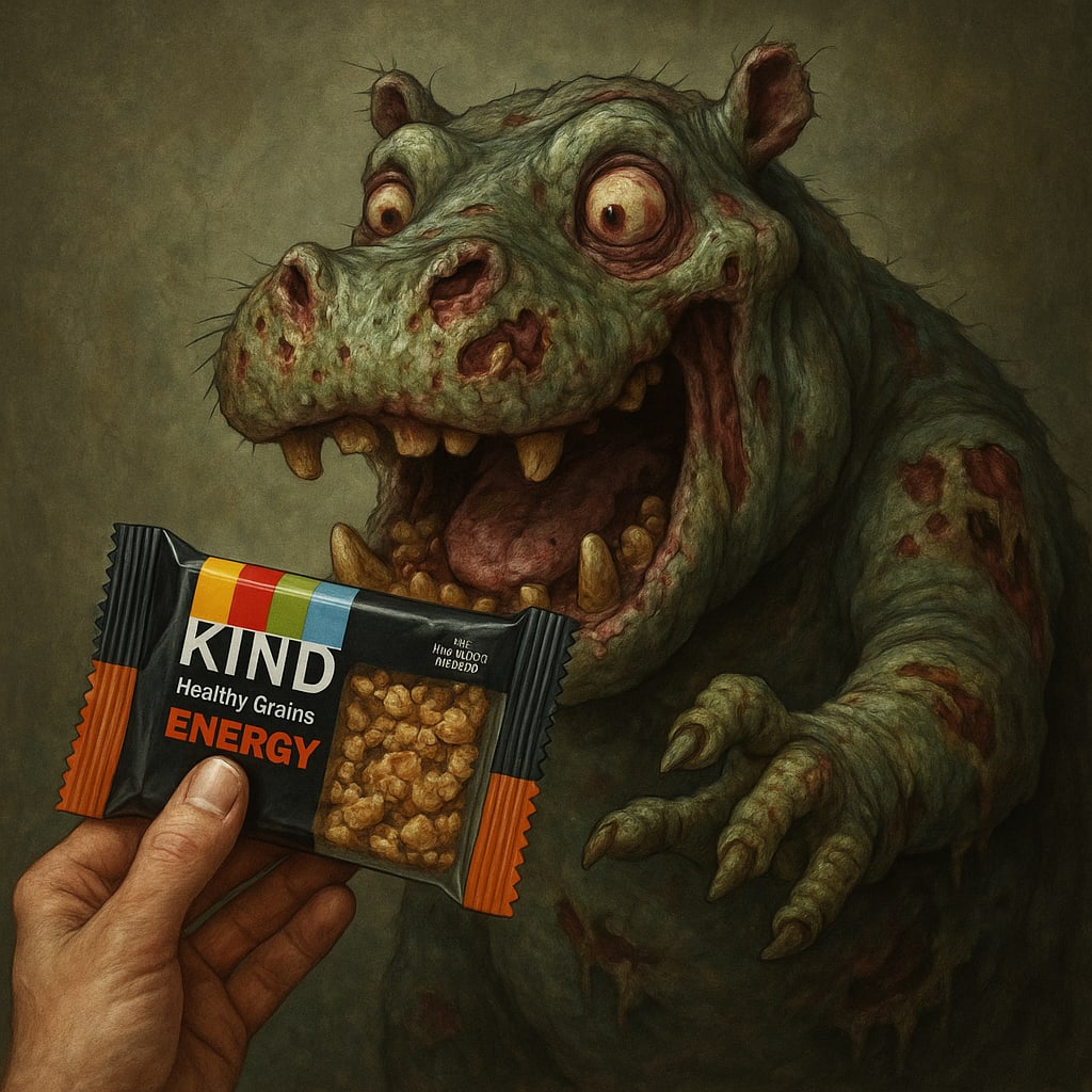 /showme Making a hippo zombie happy by giving it a KIND Healthy Grain Energy Bar.