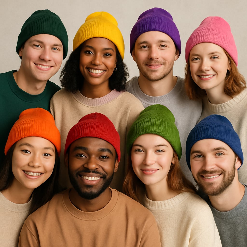 /showme people wearing beanies of many different colors.