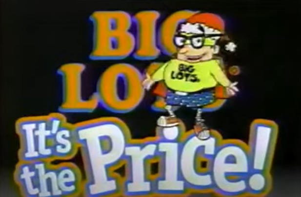 All that changed when they restructured, rebranded, and re-leveraged themselves as Big Lots. Suddenly, whoever was running the place decided they wanted to be a cut-rate Target. Now they were too good to buy remaindered stock, sell last-year’s tech, peddle off-brand potato chips made in Pewaukee. No - they had to go UPmarket, where the money was (presumably). And so began a long decline: their original fan base deserted them when the quirky deals left. The lowest-price-wins bargain shoppers left when Dollar Tree came to town. And if you were just shopping for home essentials, people soon found out you get those for MUCH cheaper prices at the Wal-Mart cross-town.