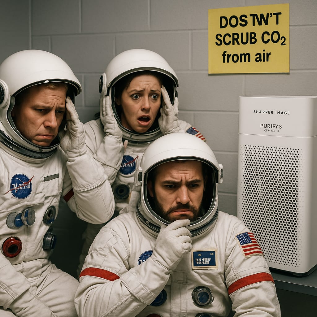 /showme Astronauts dismayed to learn that Sharper Image by Vornado PURIFY 5 Triple Stage HEPA Air Purifier does NOT scrub CO2 from the air.