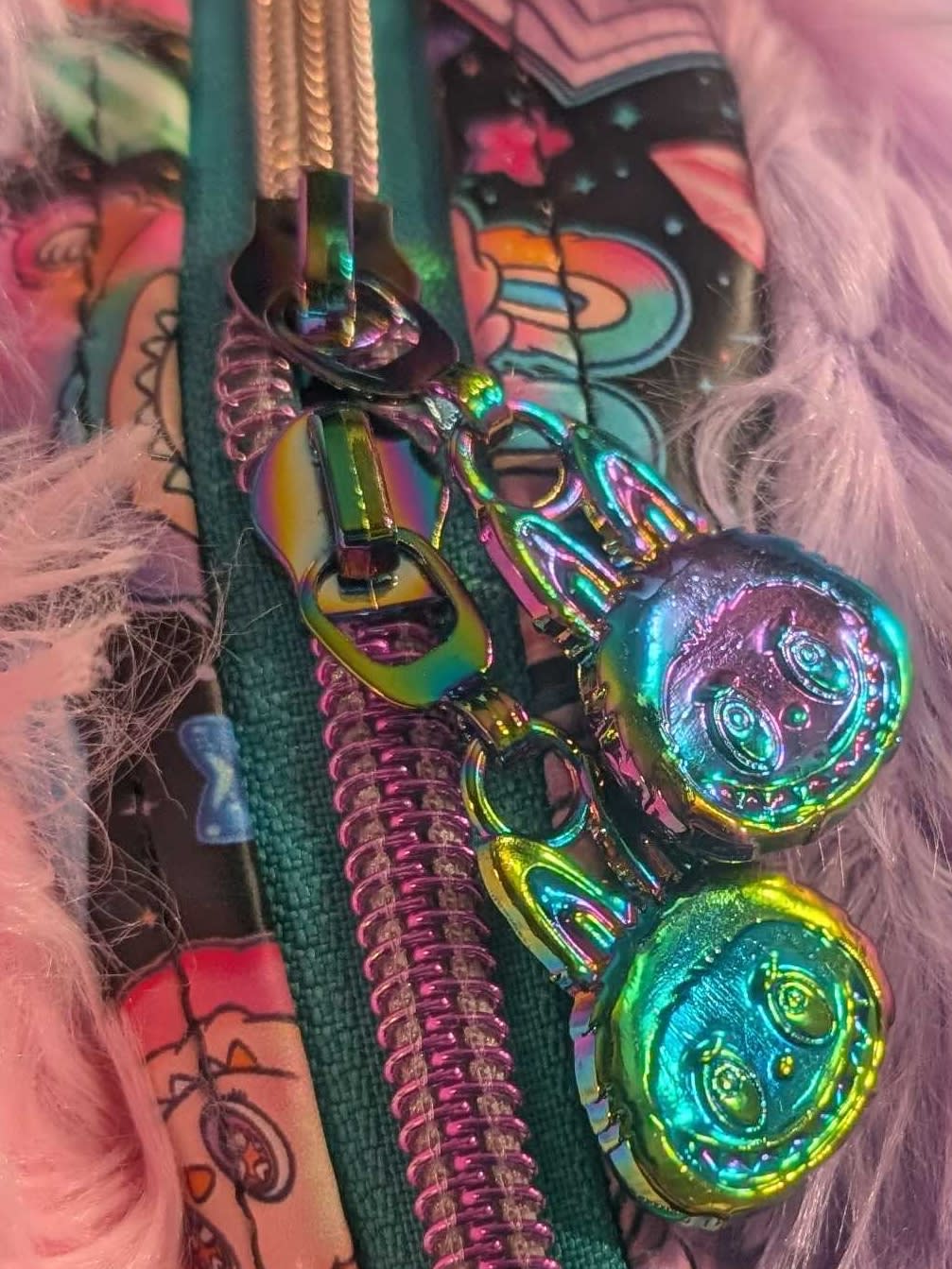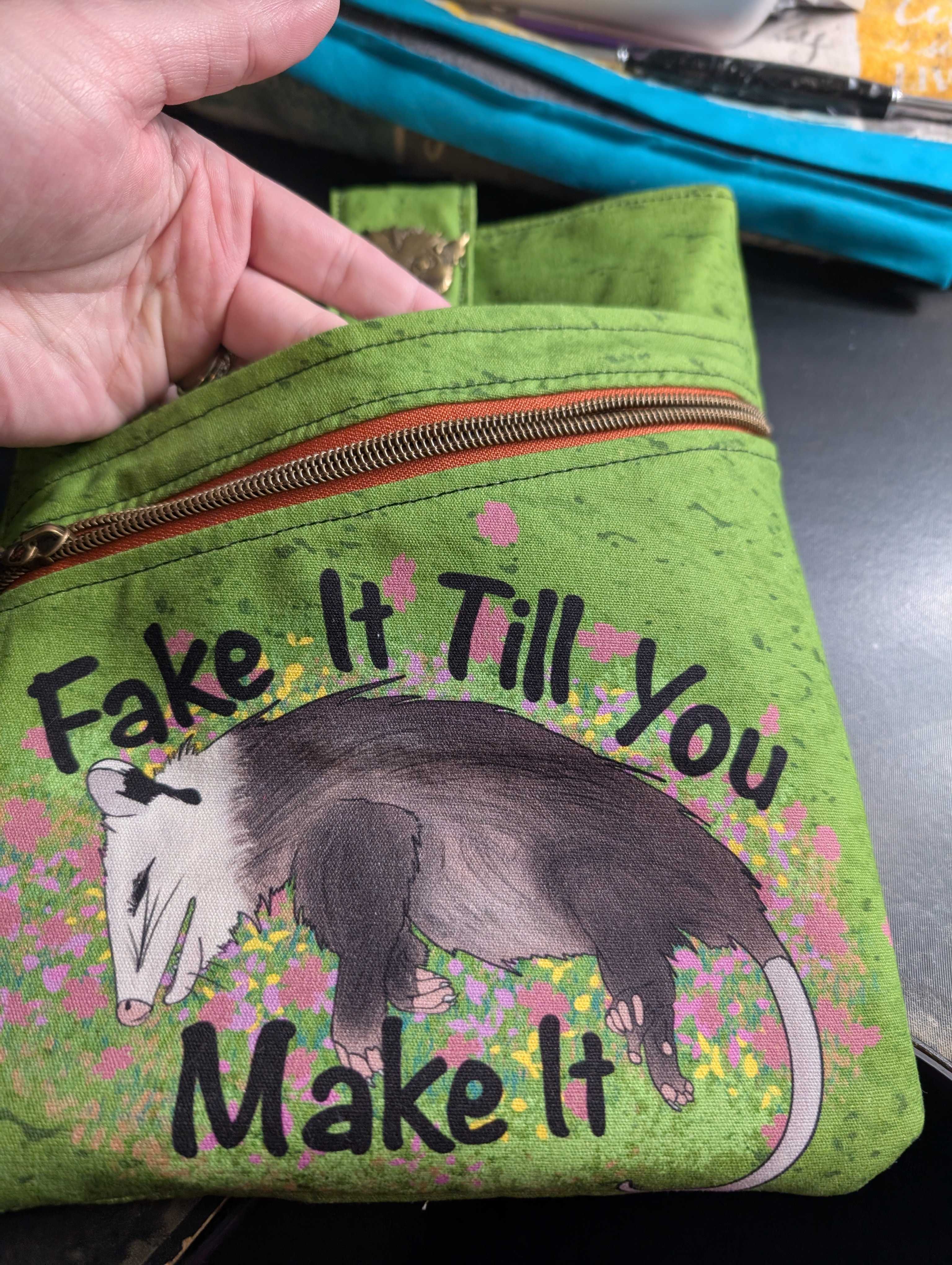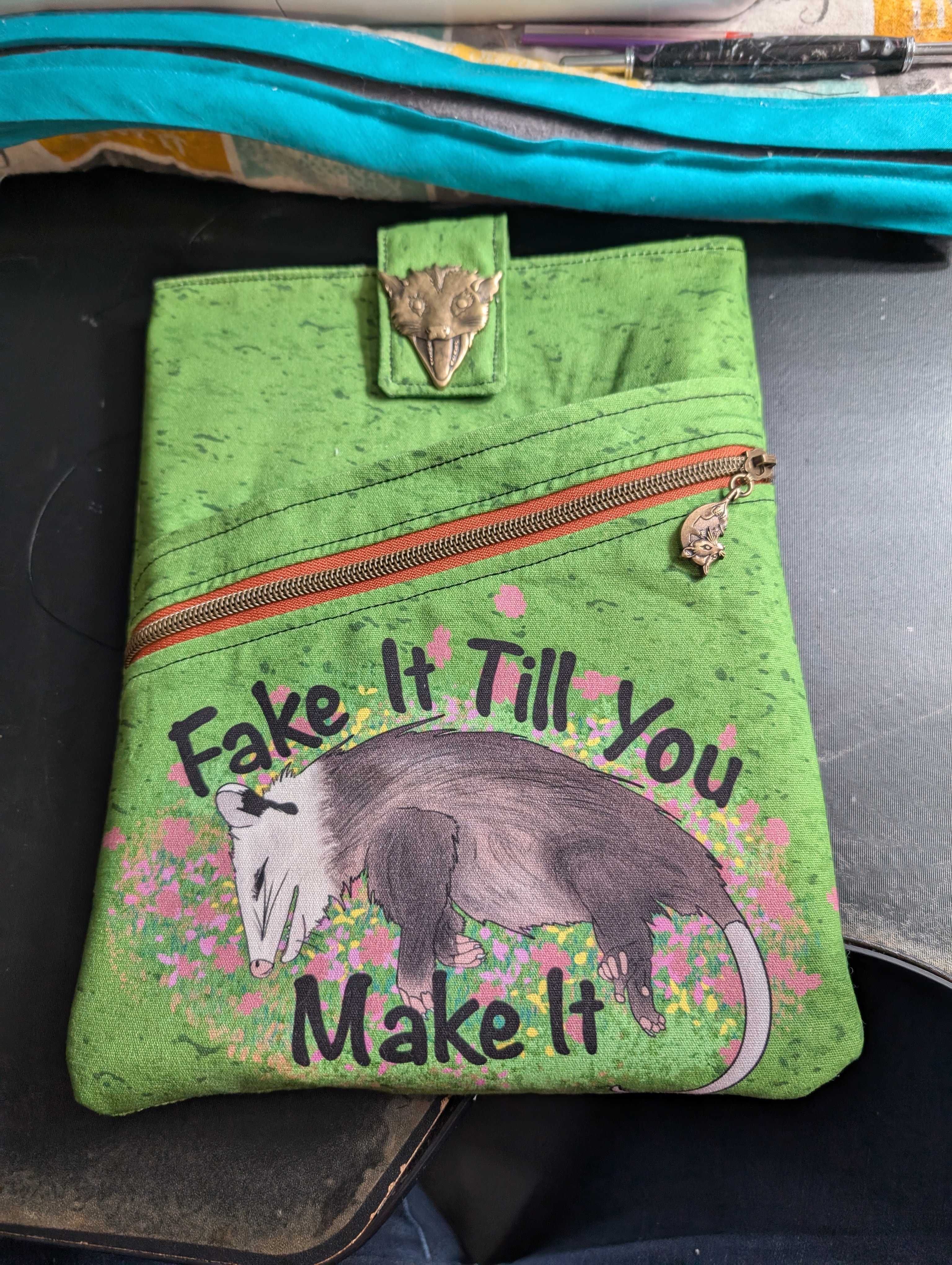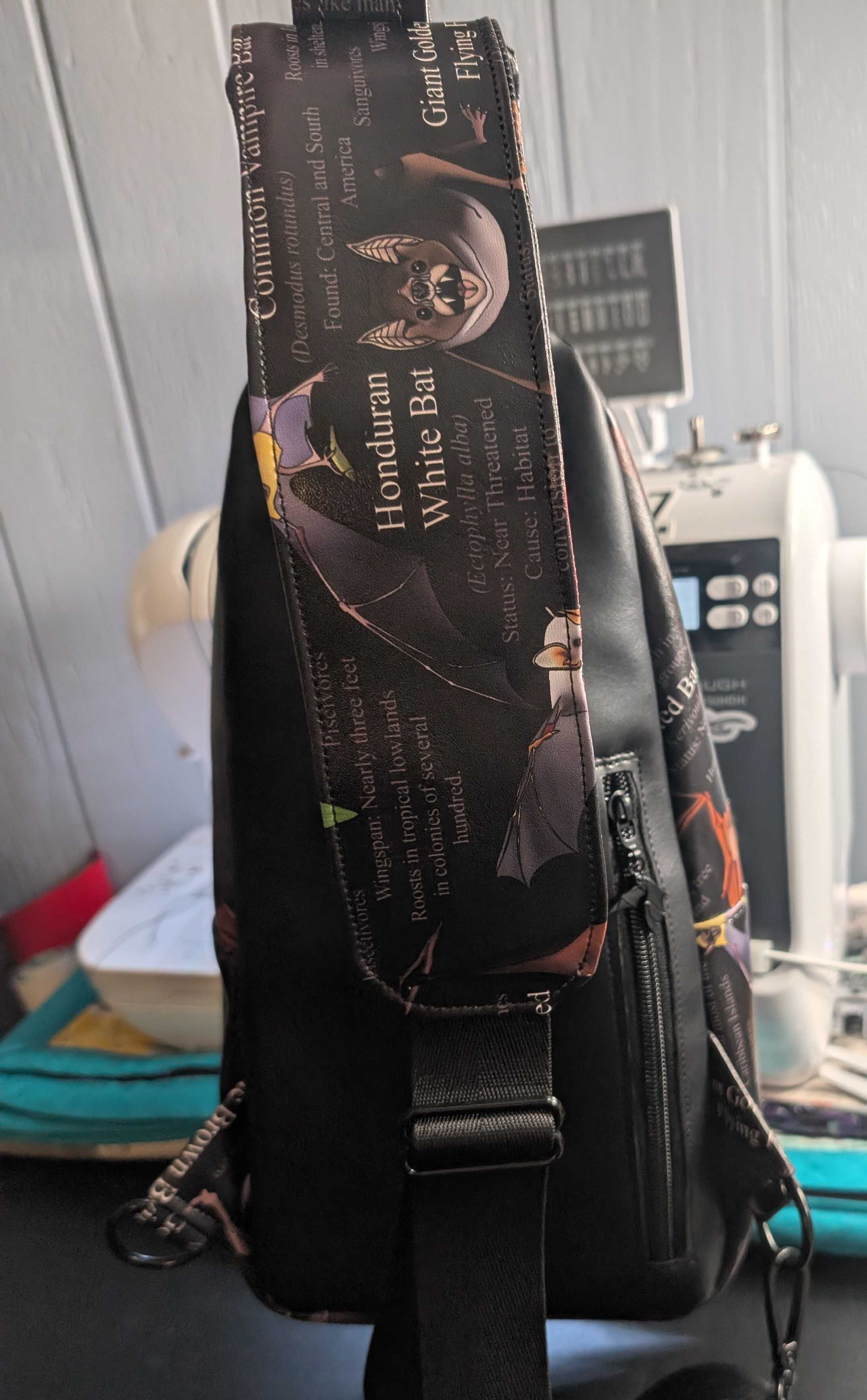 Oh! I forgot to share this example of me still learning stuff. I forgot to move the zipper pocket out of the way and sewed through it when attaching the straps.