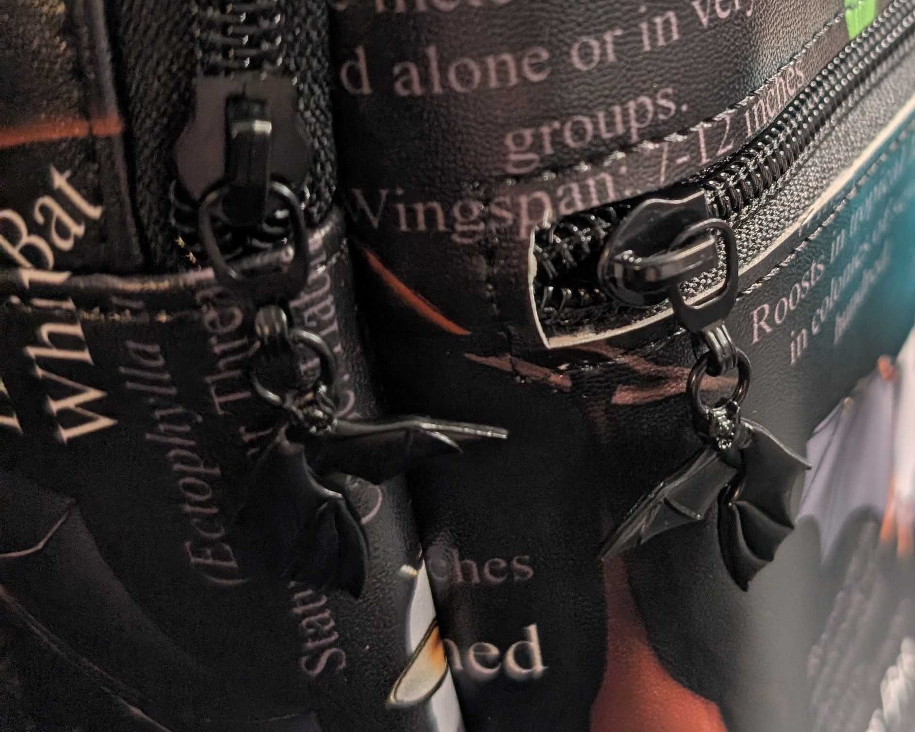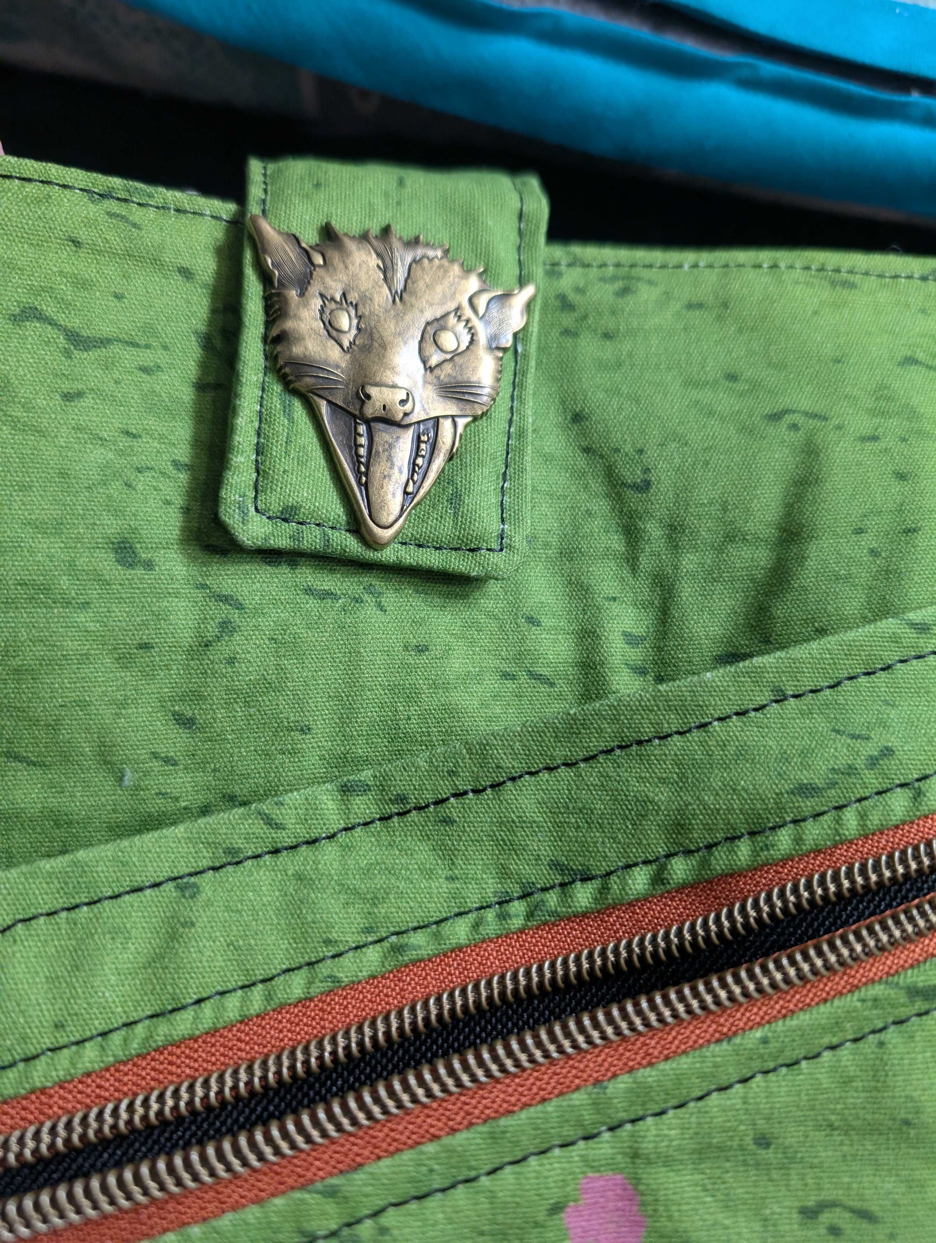 This was my first run at this type of bag. The hardware made it extra fun for me. The larger bat at the top is a magnet so you can unsnap it and access the main zipper compartment.