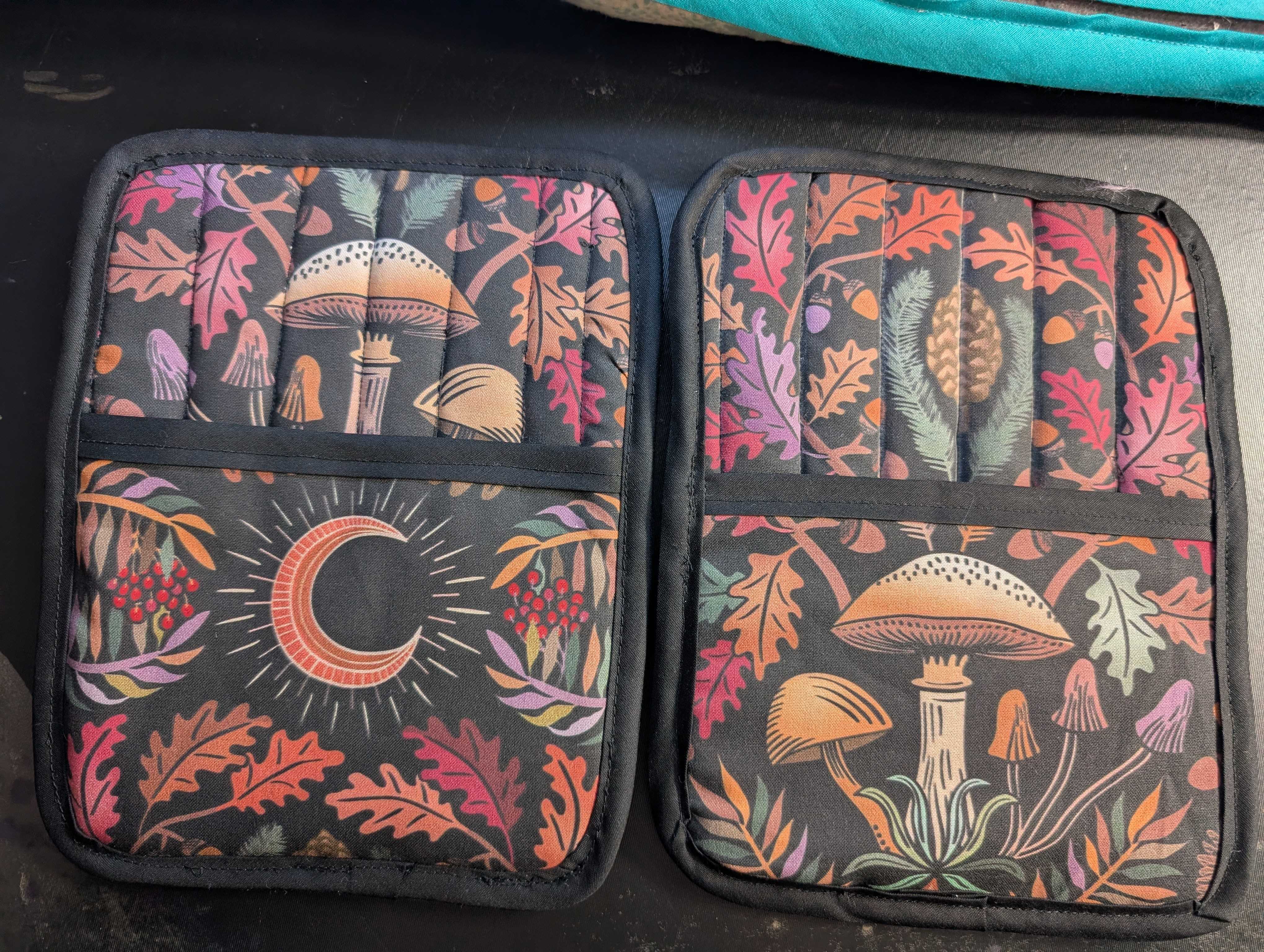 I’m still not great at straight lines for fabric (I’m decent at it on vinyl), and quilting-type work is generally my kryptonite. But these turned out pretty well overall.