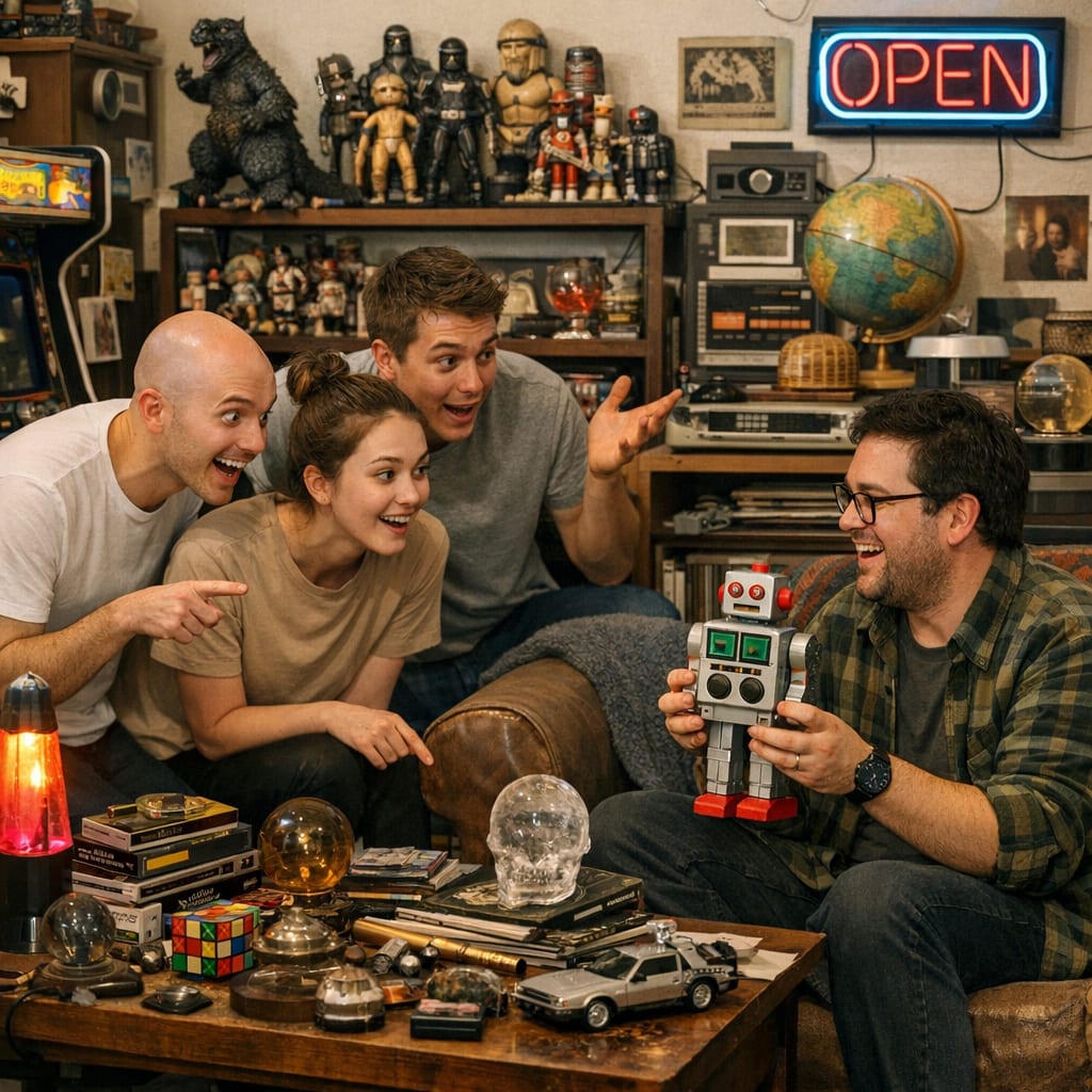 @cfg83 Here’s the image you requested for “Frightened minimalists being confronted by the Super Clean Hoarders!”