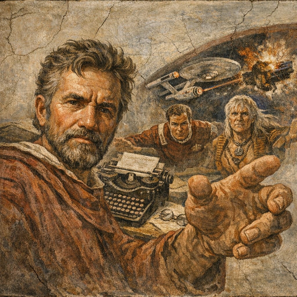 @zippyus Here’s the image you requested for “the type of person into 1930s typewriters and Star Trek II: The Wrath of Khan. Style of Michelang…”
