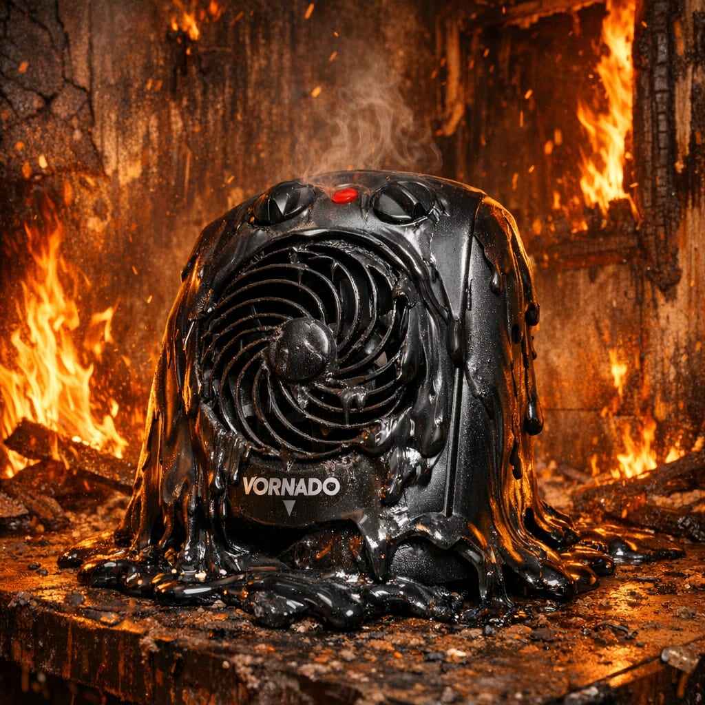 @Kyser_Soze Here’s the image you requested for “Vornado VH203 Personal Heater melting while the walls around it are burning”