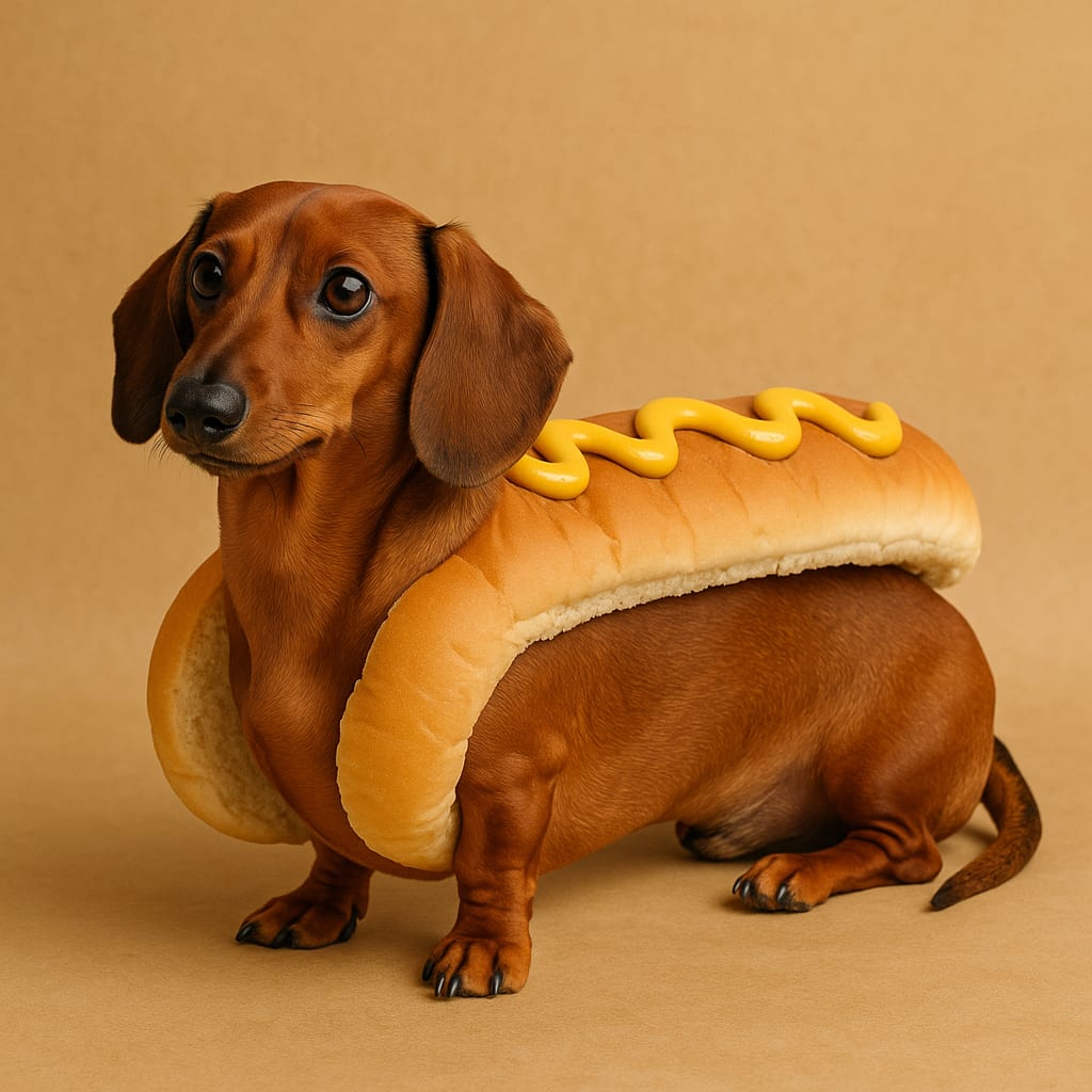 /showme a wiener dog in a hotdog bun
